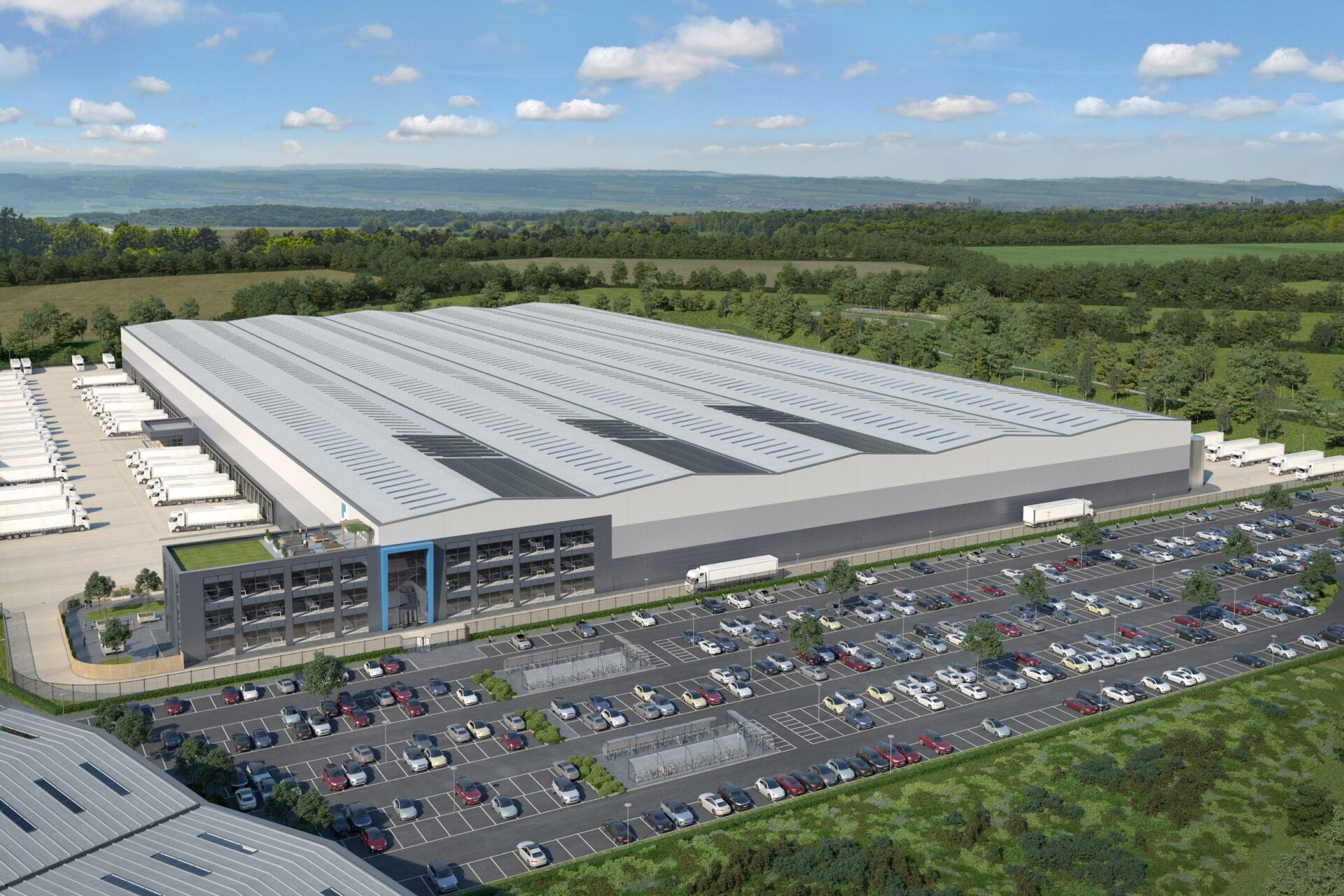 Mountpark Hinckley is a brilliant example of prioritising employee welfare. Almost 50% of the 1.46 million sq ft site is allocated to green space — that’s over 37 acres of enhanced meadow, wetland and grassland — while natural lighting in warehouses and offices, break-out gardens and roof terraces give employees further room to breathe. 2.5km of new off-road footpaths and trim trails and over 10,000 new trees and plants only add to these credentials, creating an environment which supports people as well as the abundance of biodiversity on its doorstep.